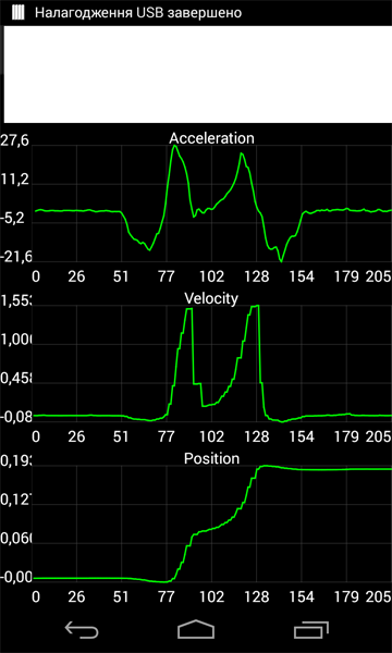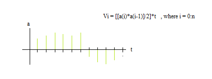 这意味着,我取加速度的第一个值,乘以下一个值,除以2,乘以测量之间的时间。所以我得到了梯形,它定义了时间的时刻的速度。然后我加入所有的梯形来接收速度。位移也是一样,但是这种方法很糟糕。但这还不是全部..。