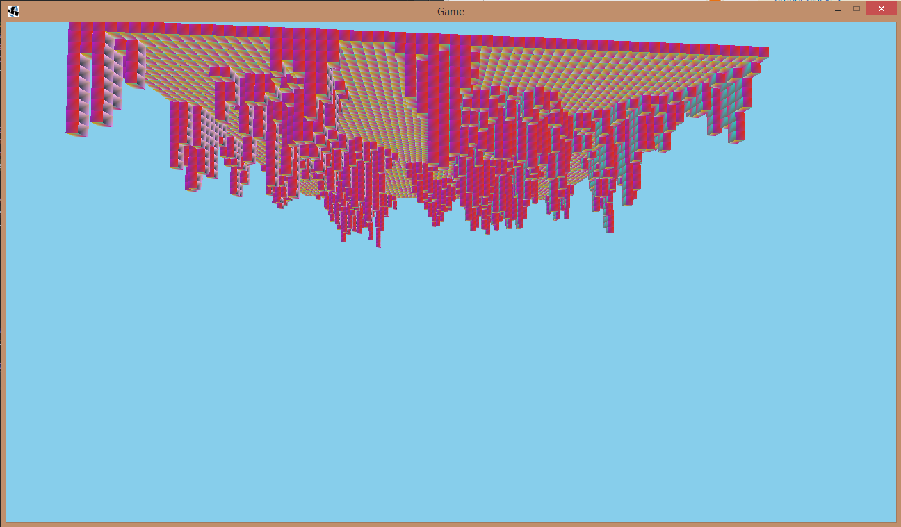 我正试图用Java中的opengl实现一个体素引擎。当我试图在屏幕上渲染一个体素块时,用一些简单的噪声来生成地形,它看起来是颠倒的。我假设这是因为我正在循环我的块来生成它。
