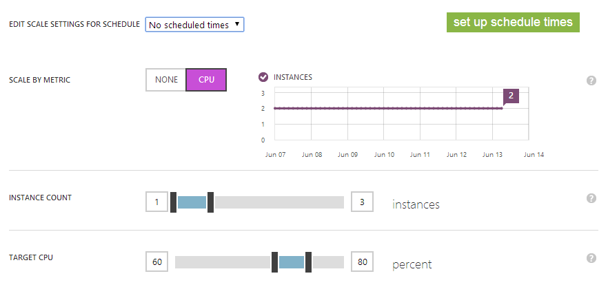 我只是看了一下我的Azure网站设置,在我看来,虽然监控指标只给我们CPU时间,但是自动缩放是通过针对CPU百分比来设置的。