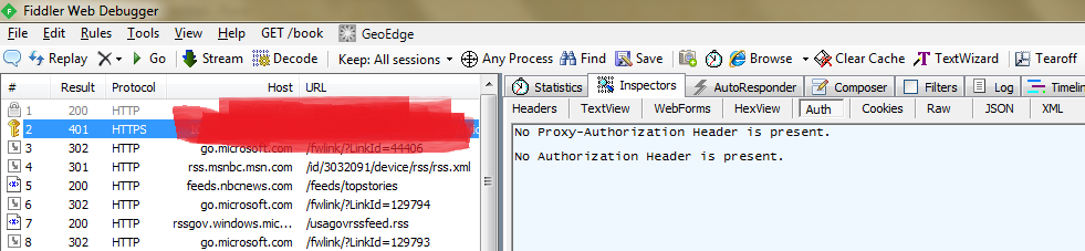 你要通过代理服务器吗?如果是,是否将详细信息输入IE?你能在IE中浏览https页面吗?如果是的话,每个进行https调用的WebRequest都应该获取它,因为它需要向代理服务器发出一个CONNECT (它是这样做的),但是在您的调用中缺少Proxy-Authorization报头。这应该是您关注的焦点--尝试一个普通的WebRequest来表示https:// google.com,然后看看您在fiddler中得到了什么。