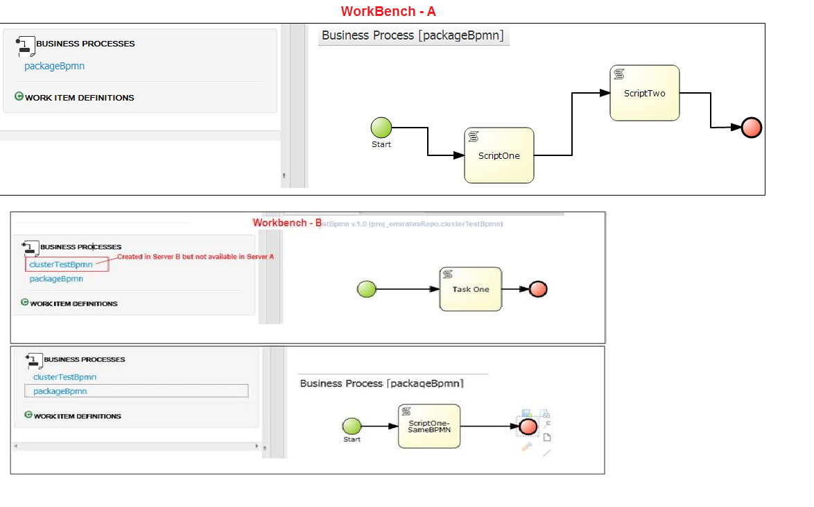 在Workbench-A中创建的问题 BPMN进程没有与Workbench-B同步。以下是项目资产差异的屏幕截图。附在“ServerAssets.png”中的图像
