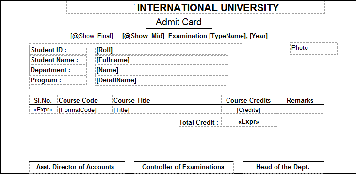 现在的问题是,如果我想打印/生成所有学生的录取卡,而不是每次打印一张录取卡,我现在该怎么办?我可以得到所有学生的数据,但我不知道如何在报告中表示他们,以实现这一目标。