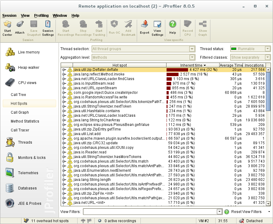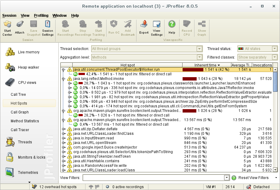 我在openSUSE 13.1 x64上,Maven 3.2.1和JProfiler 8.0.5