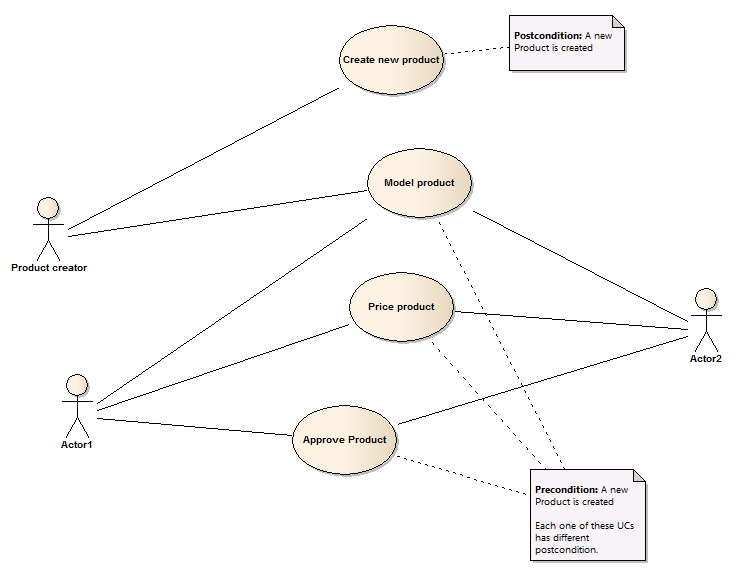 父用例是创建新产品,其中包括4个强制性的子用例,例如模型产品、价格产品、批准产品等。