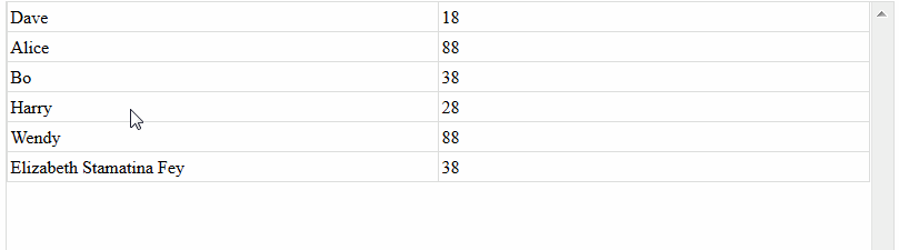 如果从存储中删除最长的名称,则第一行应调整其自身大小,如下所示: