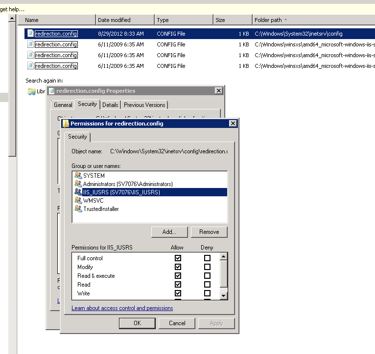 Exception Details: System.UnauthorizedAccessException: Filename: redirection.config