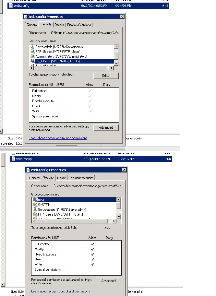 以及web.config上的错误(如这里所建议的),http://www.codeproject.com/Questions/348972/Error-Cannot-read-configuration-file-due-to-insuff