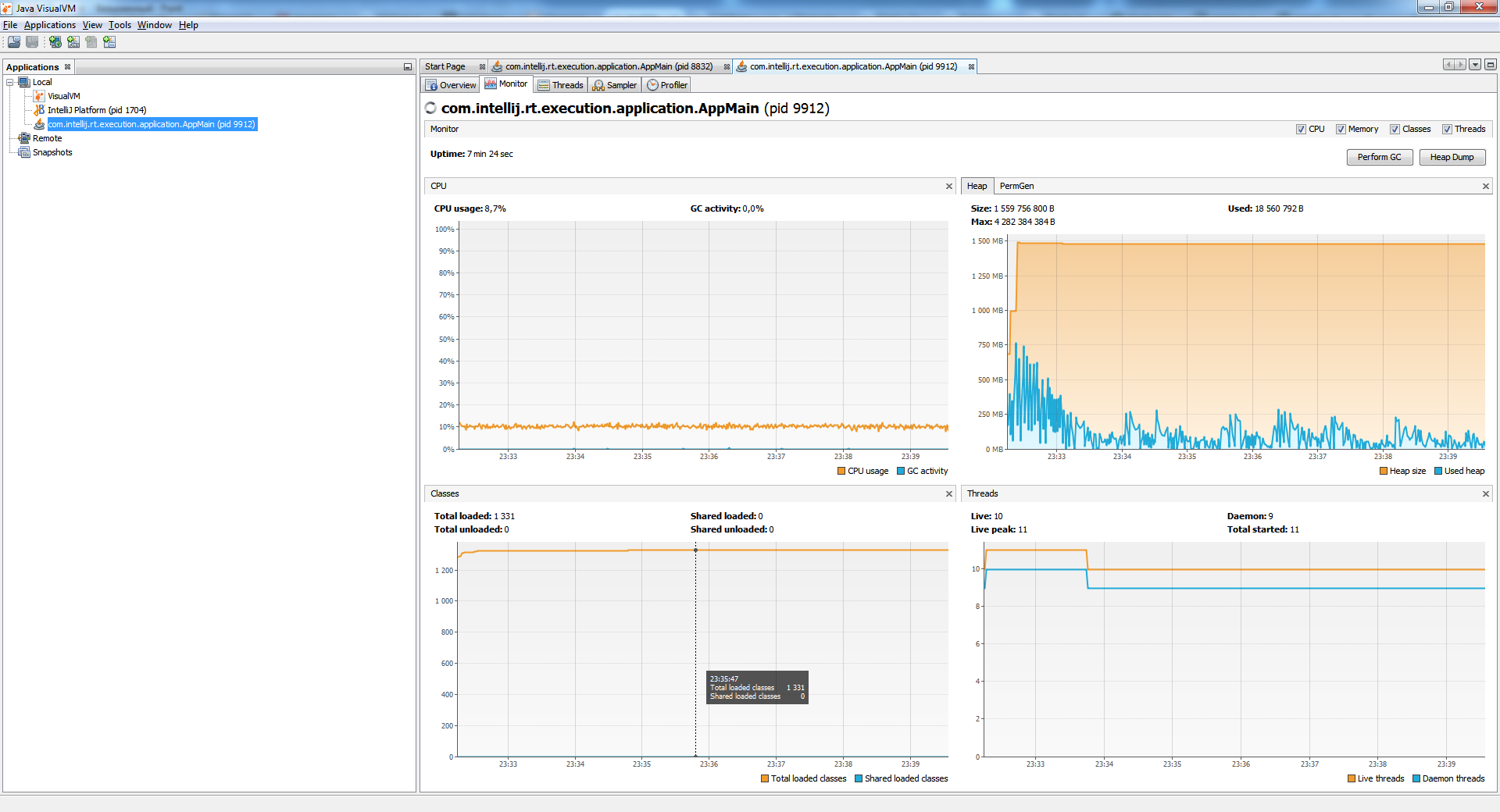 threadFactory输出到System.out的代码的修改版本导致了“类似锯子”的堆使用模式: