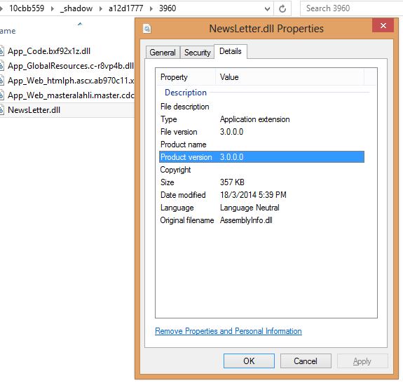也许您应该看看“临时ASP.NET文件”文件夹是什么。考虑一下DLL的3.0.0.0版本最初是如何实现的,这可能会为您的问题提供一些线索。(也许是通过ASP.NET完成的动态编译;提到一个名为App_Code…的程序集在你的一个截图中,似乎暗示了这一点。)