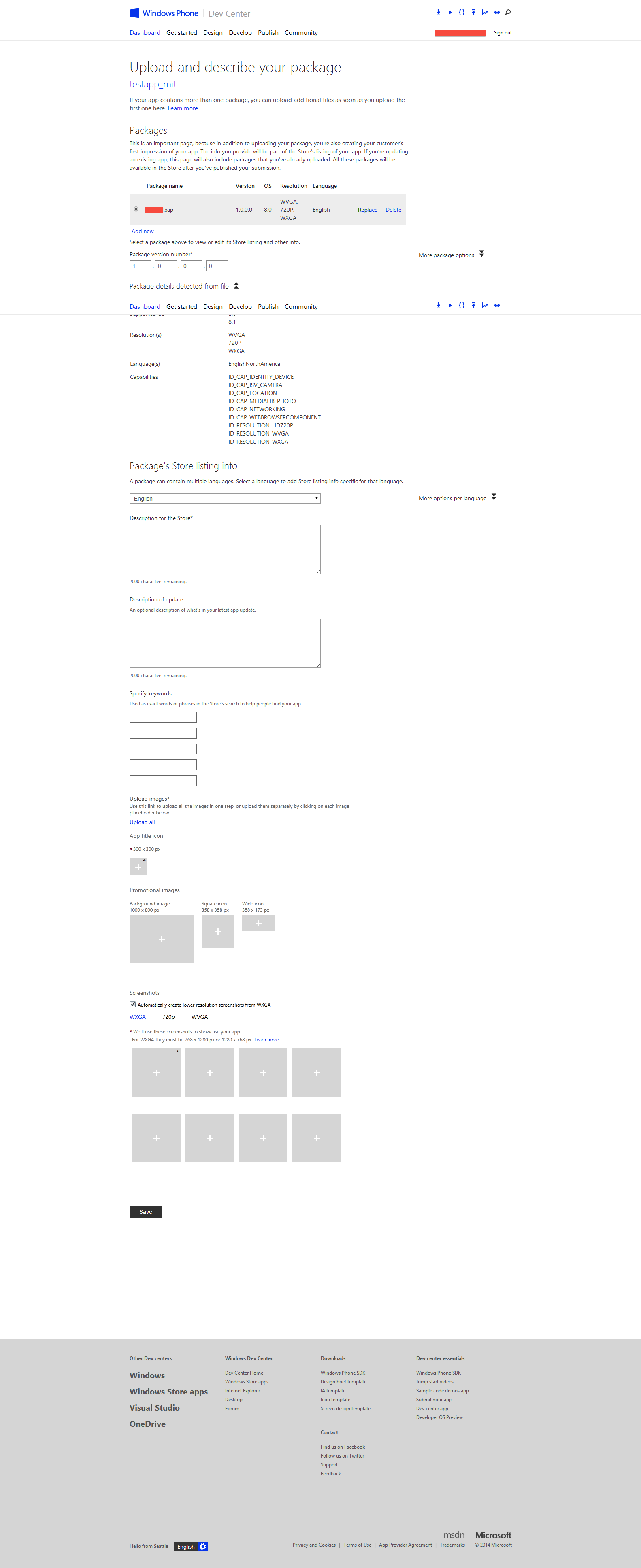 ->On保存点击你得到一个屏幕与你的应用程序名称与另一个选项上传和描述您的项目