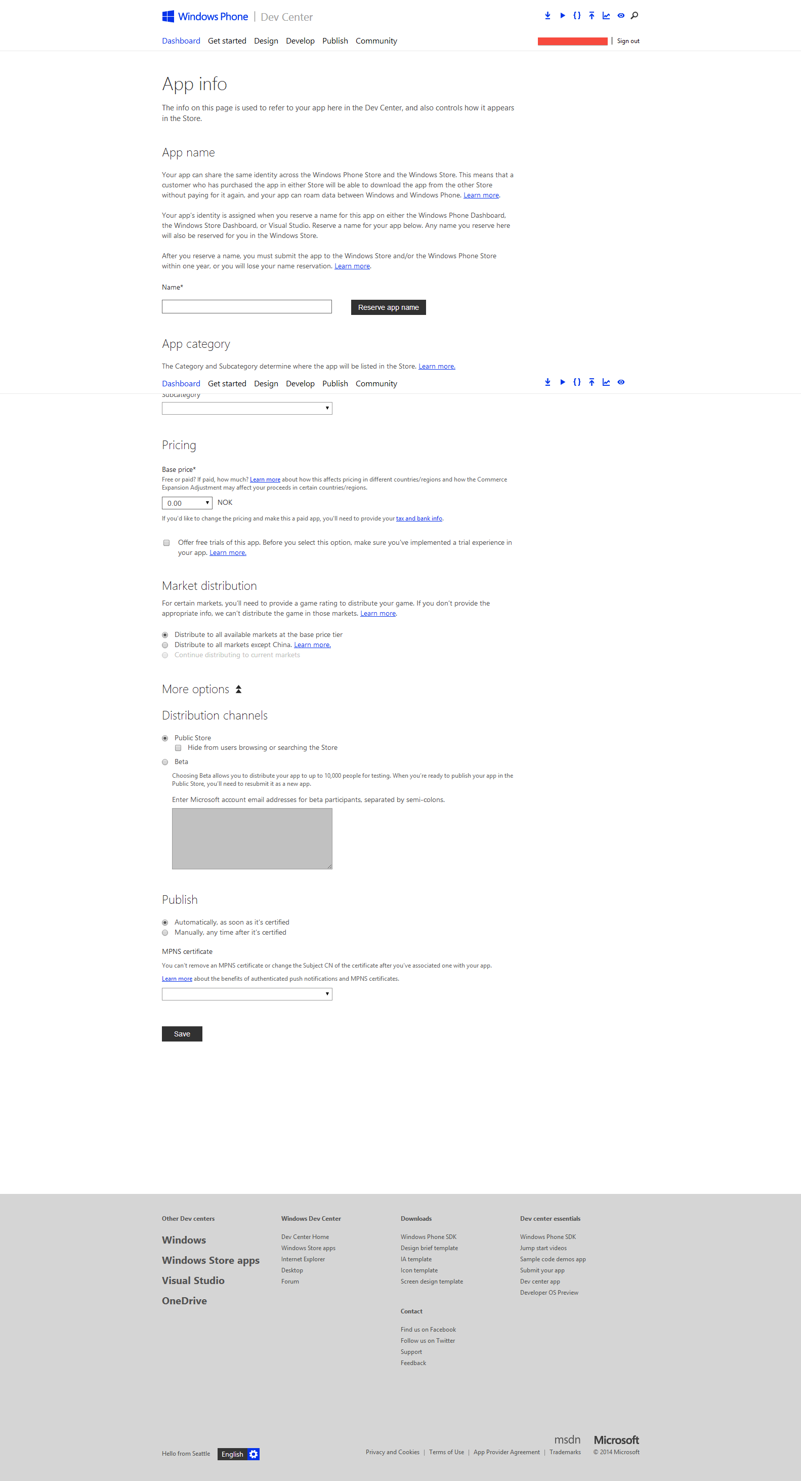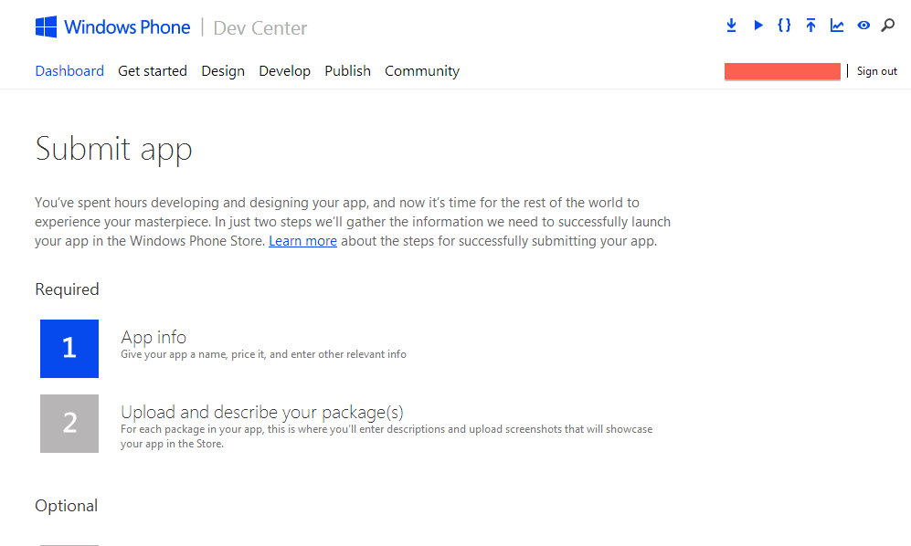 打开这个链接到公共应用市场商店:https://dev.windowsphone.com/en-us/publish#2