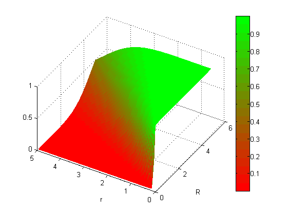 surf( X, Y, (R.^6)./( R.^6 + r.^6 ), 'EdgeColor','none');