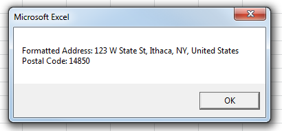 MsgBox "Formatted Address: " & domDoc.SelectSingleNode("//result/formatted_address").Text & output