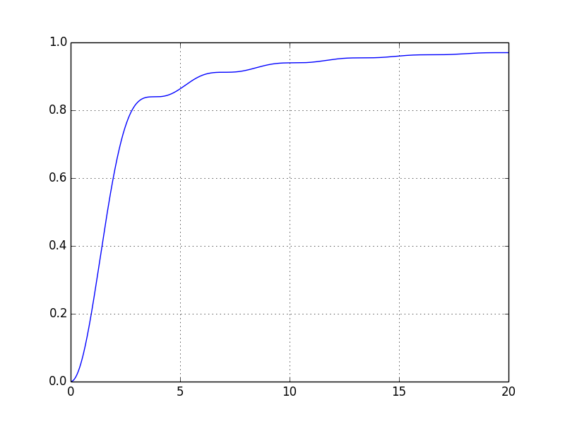 pwr = quad(f, 1e-9, 13.33)相当于0.954。