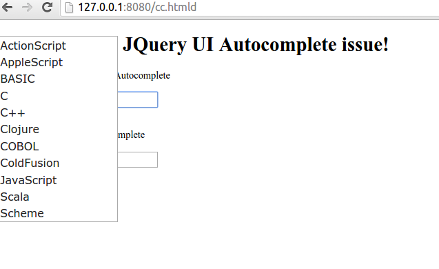 <h1>Autocomplete JQuery UI Autocomplete issue!</h1>