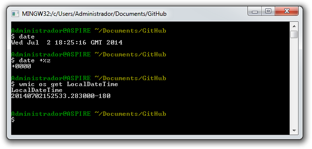 我在GMT-3上,但是由GitHub的用于Windows的Git捆绑的bash端口中的date命令没有看到这一点,而是选择UTC的时间,并认为这也是本地时间。