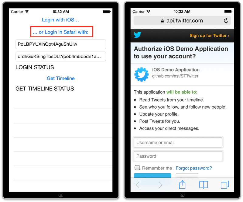 我正在开发一个twitter应用程序,我必须在应用程序中创建登录页面,就像Facebook登录对话框一样。我尝试了STTwitter,使用它我们必须在settings.Is中添加twitter用户名和密码,可以从iOS应用程序登录twitter。