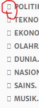 RewriteRule ^berita/(.+)$ saring.php?f=kategori&v=$1 [L]图标不再显示。例如,< li >标签之前的图标只显示方型图标,如下所示: