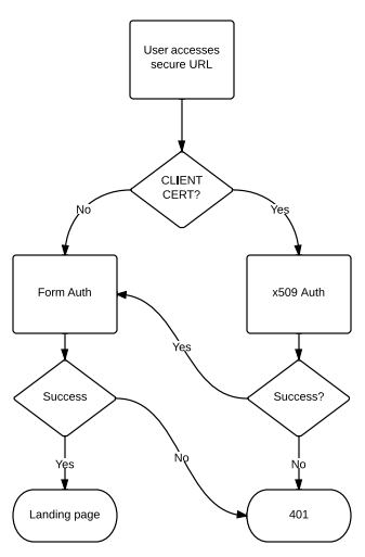 CLIENT-CERT进行了安全保护,那么除非它们提供了一个与UserService中的用户相对应的有效证书,否则身份验证将失败。标准的Spring安全x509身份验证。CLIENT-CERT没有保护该URL,他们就会被定向到基于FORM的身份验证页面。我正在使用clientAuth="want"运行Tomcat 7.0.54。这在一个“简单的”Spring安全设置中工作得很好--即将一个WebSecurityConfigurerAdapter设置为x509(),另一个设置为formLogin() (按这个例子 )。