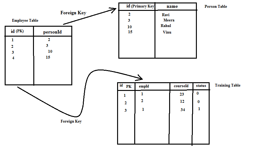 我有一个sql问题。我有三张桌子,就像图片里的一样。在前端(用户界面),我有一个selectone框来选择一个课程和一个员工自动完成。“自动完成”必须检索所选课程的所有员工姓名和状态。