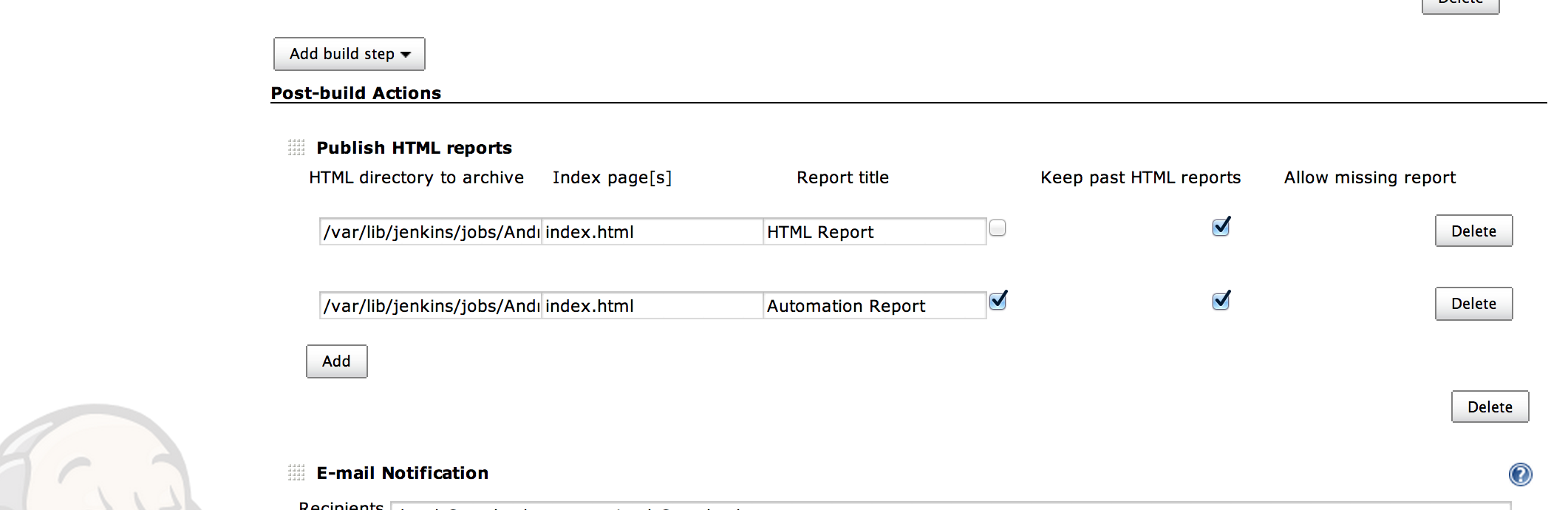 我现在只用詹金斯。我有一个脚本,执行勺子,然后我指出詹金斯哪里汤匙输出的结果和预售!我们现在已经将自动测试结果附加到每个构建中。再加上截图,这给我的经理留下了深刻的印象,使调试变得更加容易。最后的好处是这一切都是免费的!