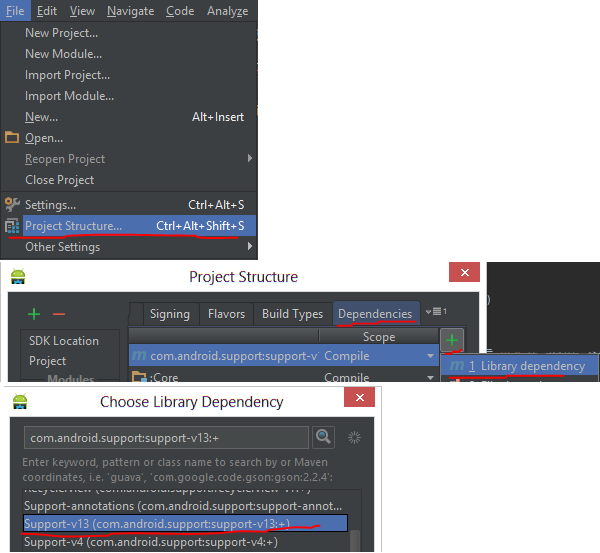 compile 'com.android.support:support-v13:+'