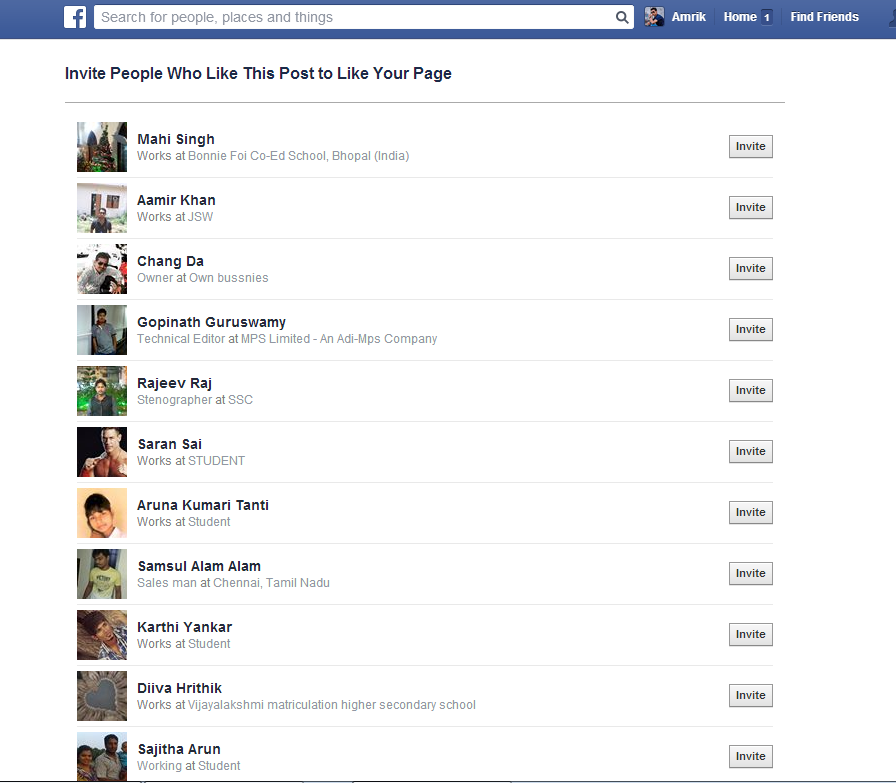 我在我的粉丝页面上增加了一篇文章。当我点击喜欢,它显示,“邀请喜欢这篇文章的人喜欢你的网页”。