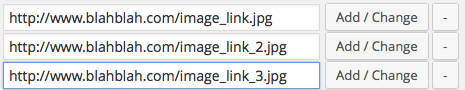 $html .= '<input id="cs_product_menu_zzz_src_'.$i.'" type="text" size="36" name="hero_options[upload_zzz_link_'.$i.']" value="' . $values . '" /> <input id="cs_product_menu_zzz_src_'.$i.'_zzzbutton" type="button" value="Add / Change" class="button-secondary zzz-upload-button" /> <div class="button zzzremove">-</div>';