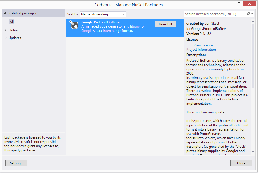 最简单的方法是为解决方案中的相关项目安装Jon的协议缓冲区NuGet包: