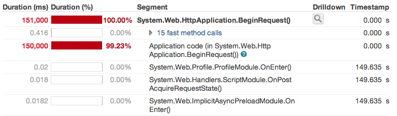 我们用NewRelic 24小时监控系统。还有一个大问题: NewRelic总是指出"System.Web.HttpApplication.BeginRequest()".造成的经济放缓