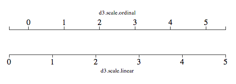 结果是,用于放置条形图的序数刻度和用于图表轴的线性刻度不对齐。如果绘制在一个轴上,这两个天平本身的样子如下:
