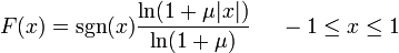 您引用了“模拟”版本的公式--从-1.1到-1.1的压缩映射,这强调了mu-law的基本思想,即量化值对较小的值编码更详细的内容(使用较小的量化步骤),因此引入的量化误差与信号的总振幅大致成正比。