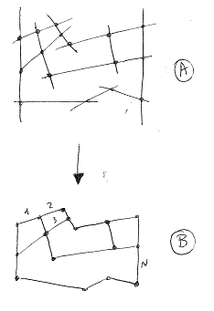 我想在下一个图中计算所有交点之间的距离(1,2,3,...N),而不丢失连接信息(哪个交叉点与哪个交叉口相连):