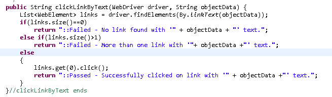 公共字符串clickLinkbyText(WebDriver驱动程序,最终字符串链接){