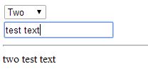 我试着做一个选择框。选中框和输入文本的值将显示在<hr>标记下面,如下所示