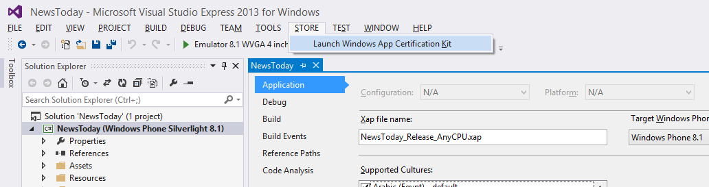 我已经完成了我的第一个windows-phone-silverlight应用程序的开发,并在模拟器上成功地测试了它,然后创建了一个付费的开发人员帐户,现在我正处于上传我的应用程序文件的阶段,商店正在等待一个.appx文件,但是在中," store“菜单只包含”启动“