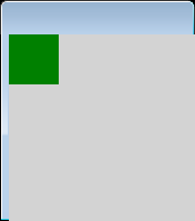 }因此,左上角应该出现绿色矩形的无框窗口。此外,当鼠标悬停时,该矩形应改变颜色为红色。