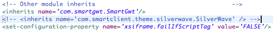 <inherits name="com.smartgwt.SmartGwtNoScript"/> 那么,将xsiFrame.failIfScriptTag设置为false不再是必要的。