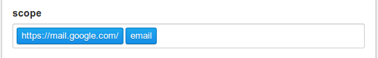 我在使用完全相同的作用域访问Gmail时遇到了这个问题。我让它在谷歌邮件提供商的“https://mail.google.com/”和“电子邮件”范围内工作。