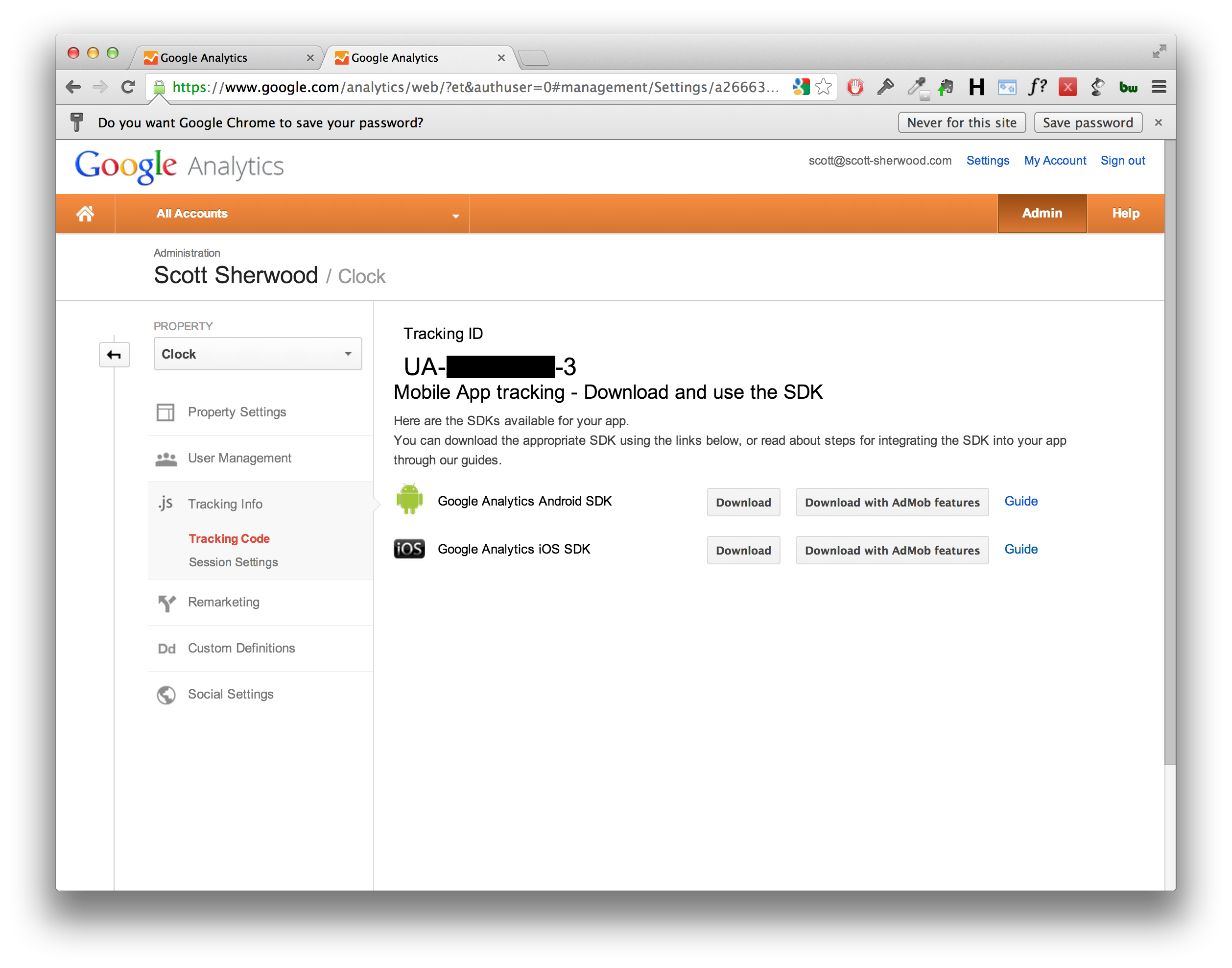 我认为您的跟踪代码有一个问题,需要在这里生成google分析帐户,这是关于如何为您的应用程序设置Google分析的一步一步的描述
