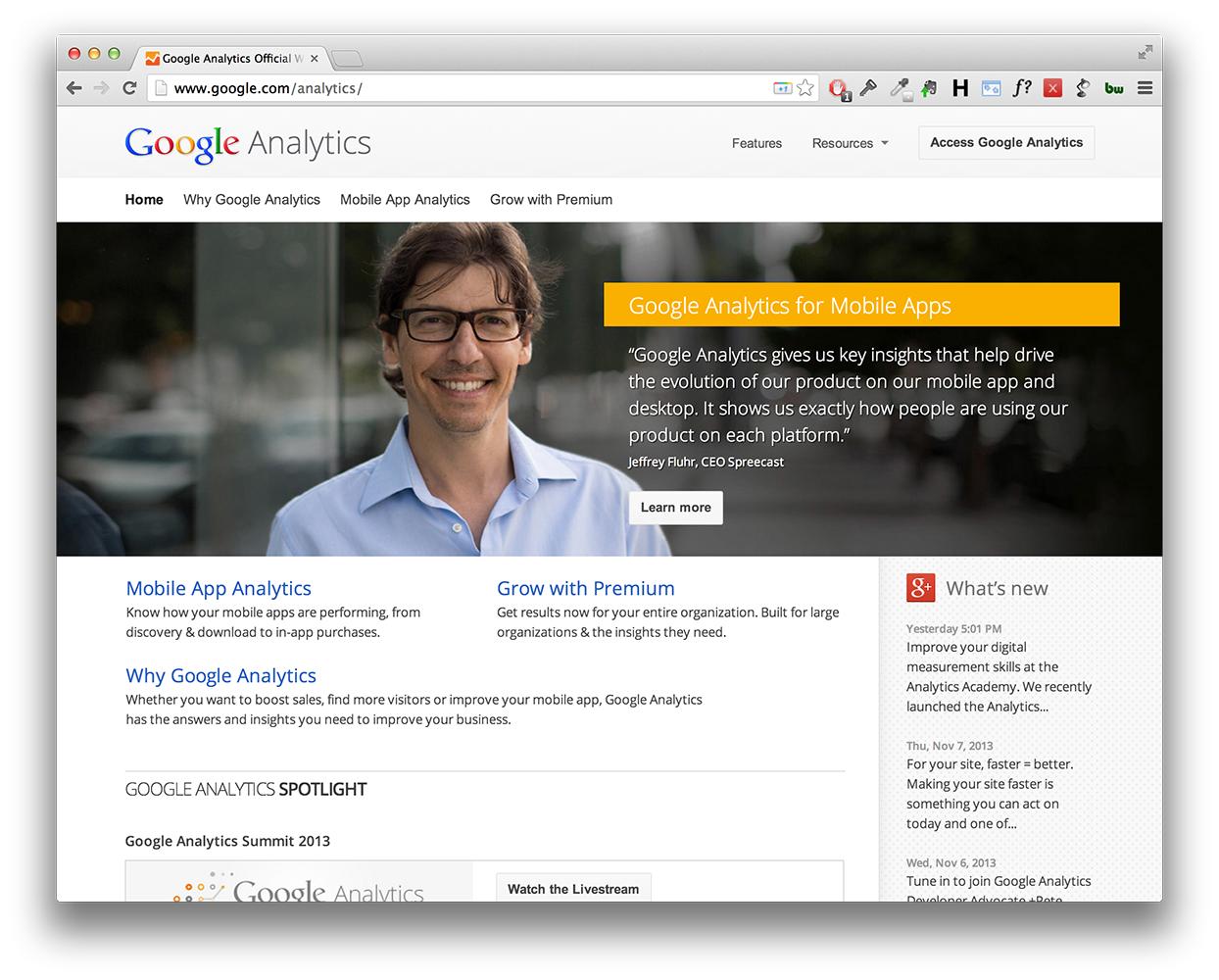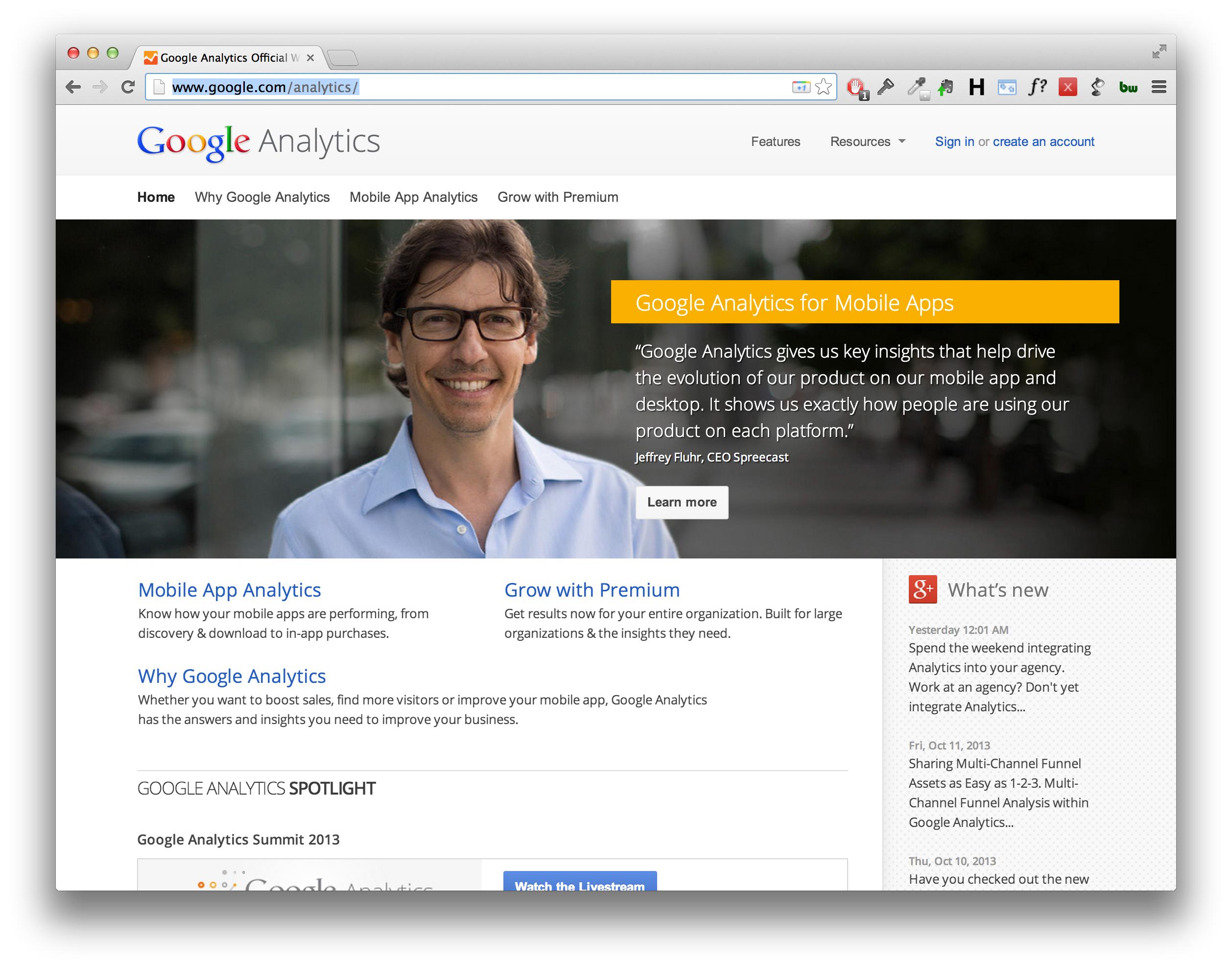去www.google.com/analytics。主页应如下所示: