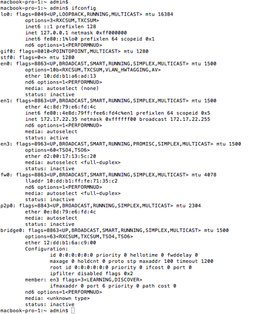 ifconfig的结果:
