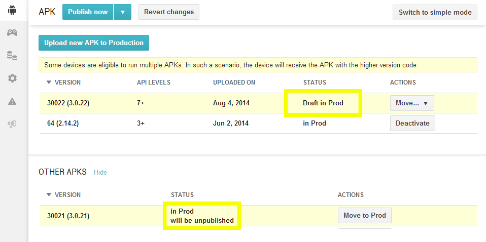 这感觉不对。当我以分阶段的方式发布时,3.0.21的当前用户会发生什么呢?如果他们不是分阶段推出的一部分,他们会被降级为2.14应用吗?还是3.0.21的APK还会被服务?