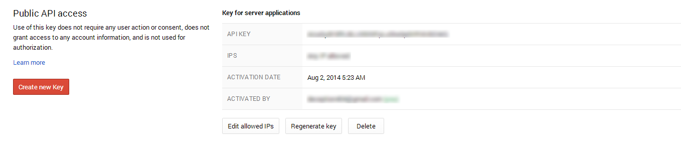"message": "Access Not Configured. Please use Google Developers Console to activate the API for your project."