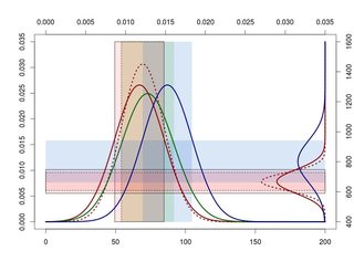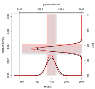 ![enter image description here][2]我想合并两者使用R,并获得一个类似于以下所示的图像。有趣的是,我还想突出+- 1SD的间隔,看看两个地块中的重叠区域。