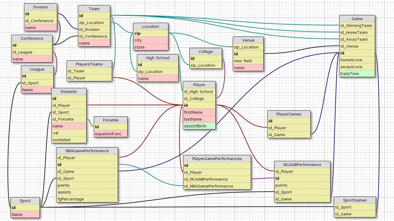 我计划使用这个SQL模式来存储/生成各种体育项目的统计数据和球员数据。我想尽可能地保持它的不可知论,但考虑到每项运动都有不同的得分和游戏标准,我不得不在比赛结束时打破它。