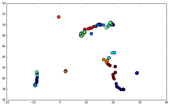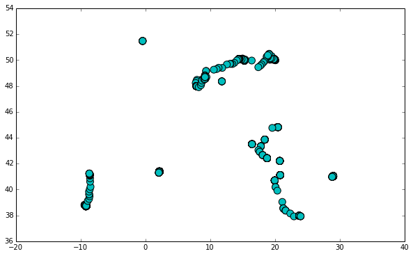 coordinates = df.as_matrix(columns=['lon', 'lat'])