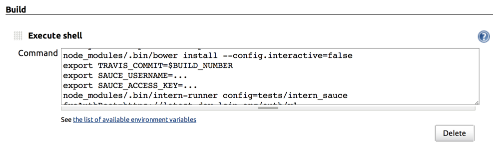 导出TRAVIS_COMMIT=$BUILD_NUMBER 出口SAUCE_USERNAME=..。 出口SAUCE_ACCESS_KEY=..。 节点_模块/..bin/实习生配置=测试/实习生配置