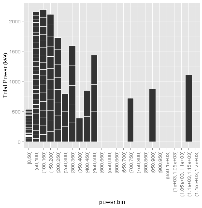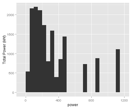 ylab("Total Power (kW)")weight美学迫使stat计算将每个计数乘以相应的权重,在这种情况下,这相当于幂值之和。