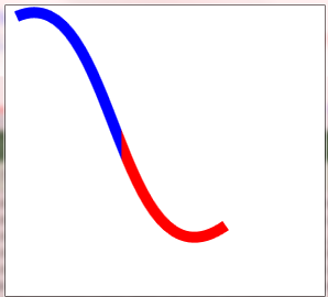 如何用两种颜色绘制bezier?就像下面的照片?我已经画了bezier,我可以填充任何颜色,但我不能梯度工作。